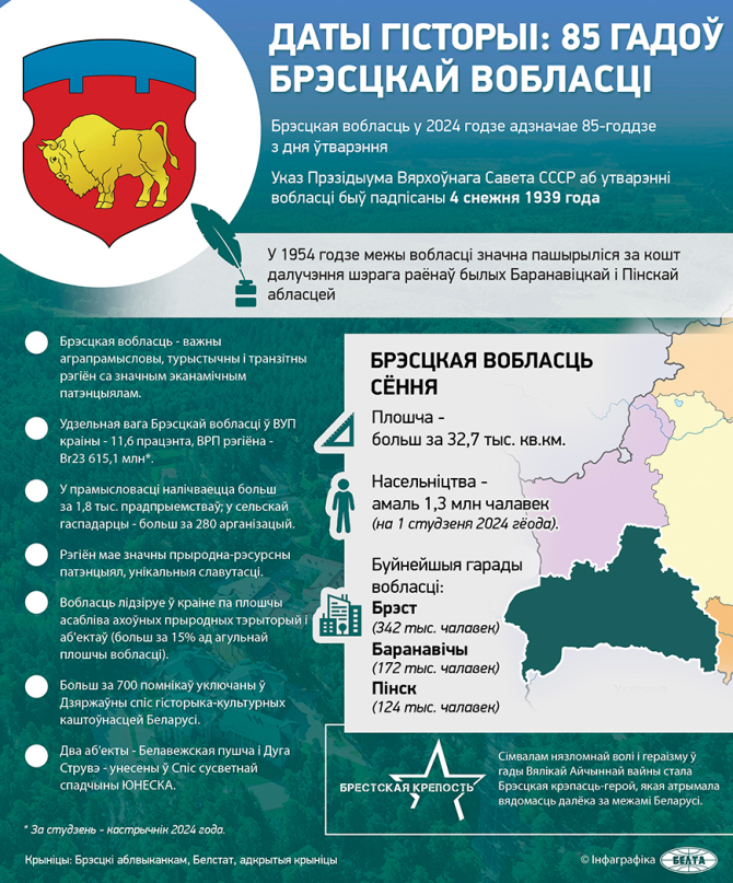 Брэсцкая вобласць у 2024 годзе адзначае 85-годдзе з дня ўтварэння.