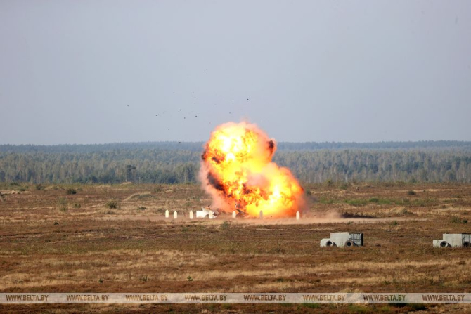 Затым з пункта кіравання кіраўнік дзяржавы паглядзеў на беларускія беспілотнікі ў дзеянні. Ваеннаслужачыя разыгралі некалькі эпізодаў баявога прымянення ўзораў узбраення і ваеннай тэхнікі, у тым ліку беспілотных лятальных апаратаў, сродкаў барацьбы з БПЛА і аўтаматызаваных сістэм кіравання для павышэння магчымасцей воінскіх фарміраванняў.