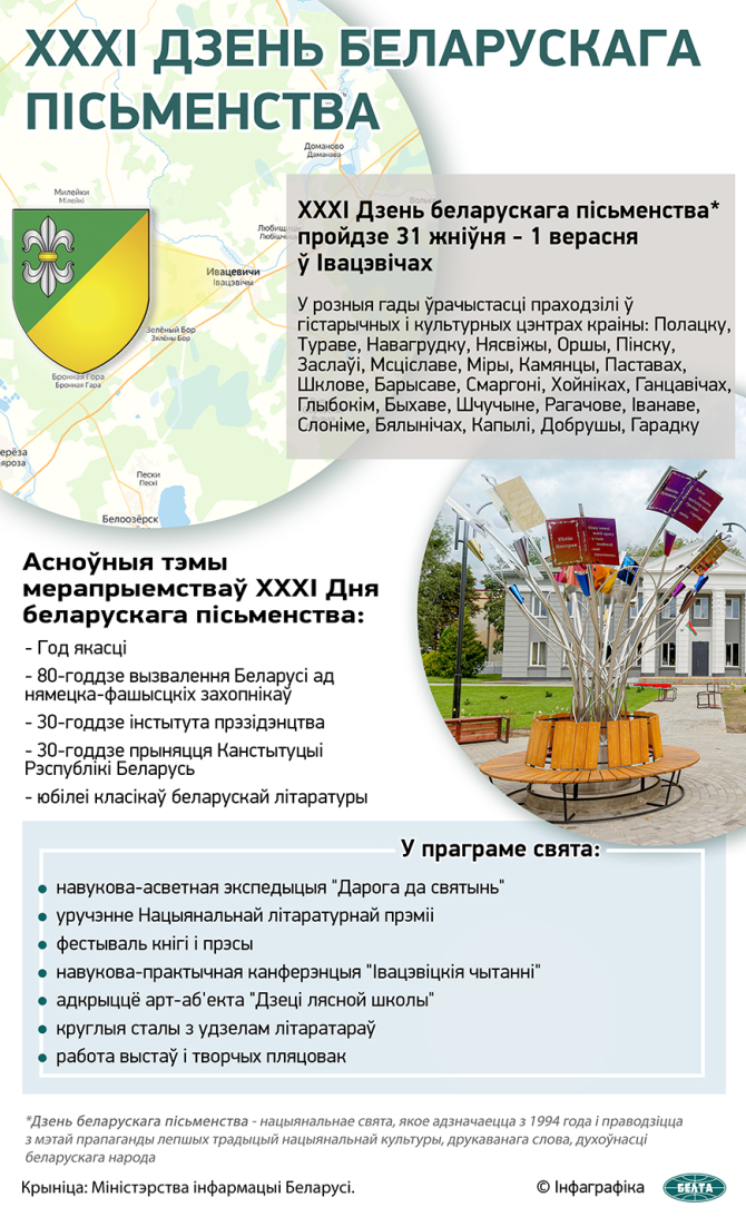 XXXI Дзень беларускага пісьменства* пройдзе 31 жніўня - 1 верасня ў Івацэвічах.