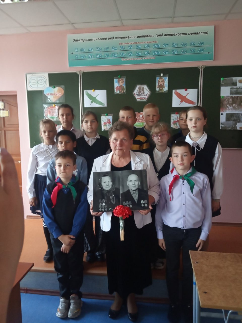 – с чувством выводит Мария Чунихина. На протяжении многих лет она является участницей ансамбля «Надежда» Белорусского товарищества инвалидов по зрению, сольно, в составе дуэта и трио выступает на мероприятиях БелТИЗ и районной организации ветеранов войны и труда. Учащиеся были приятно впечатлены тем, как душевно исполнила Мария Алексеевна любимую песню своего отца. Пенсионерка сумела «завести» класс, и песню «День Победы» дети пели вместе с ней.
