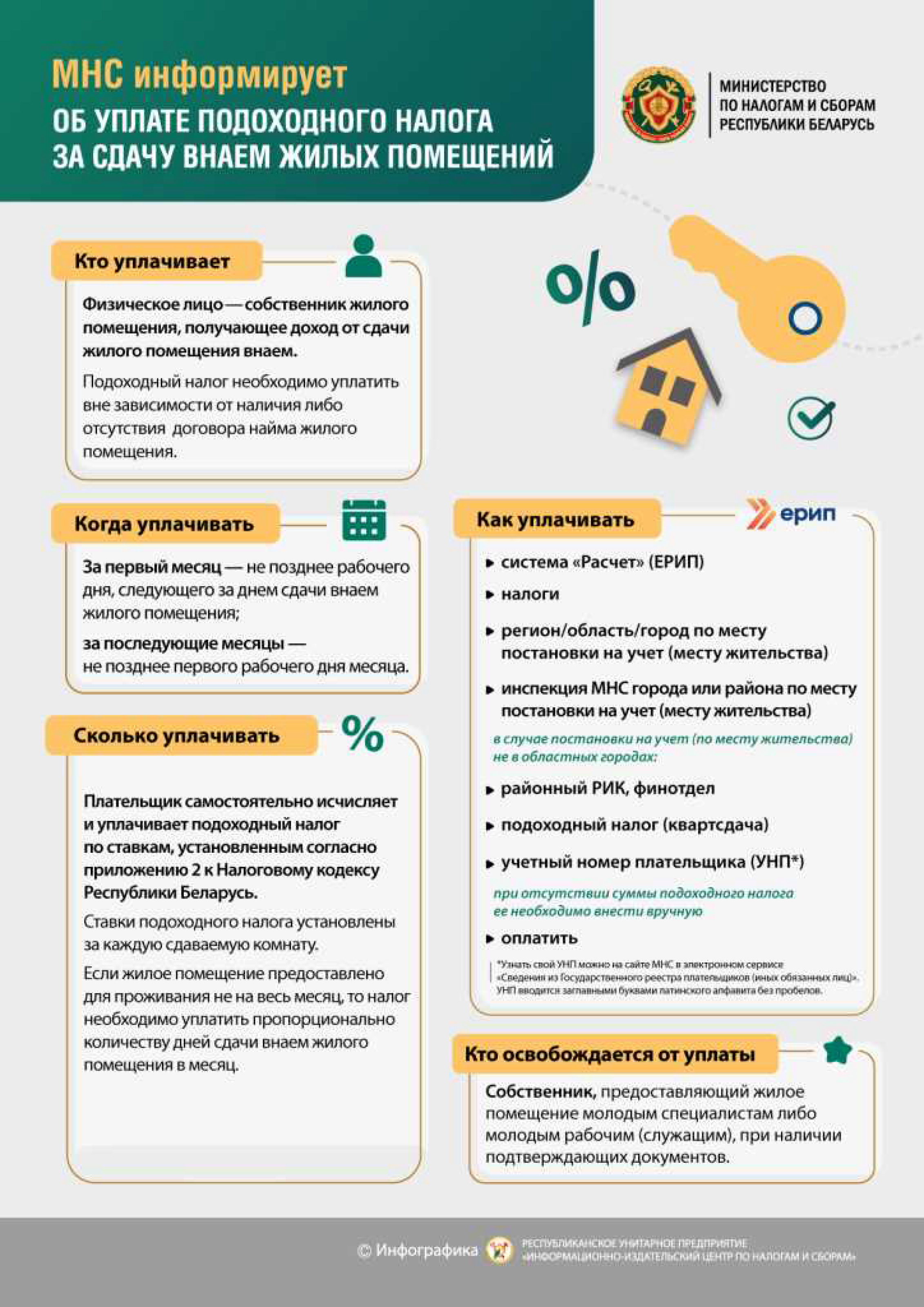 МНС информирует об уплате подоходного налога за сдачу внаем жилых помещений
