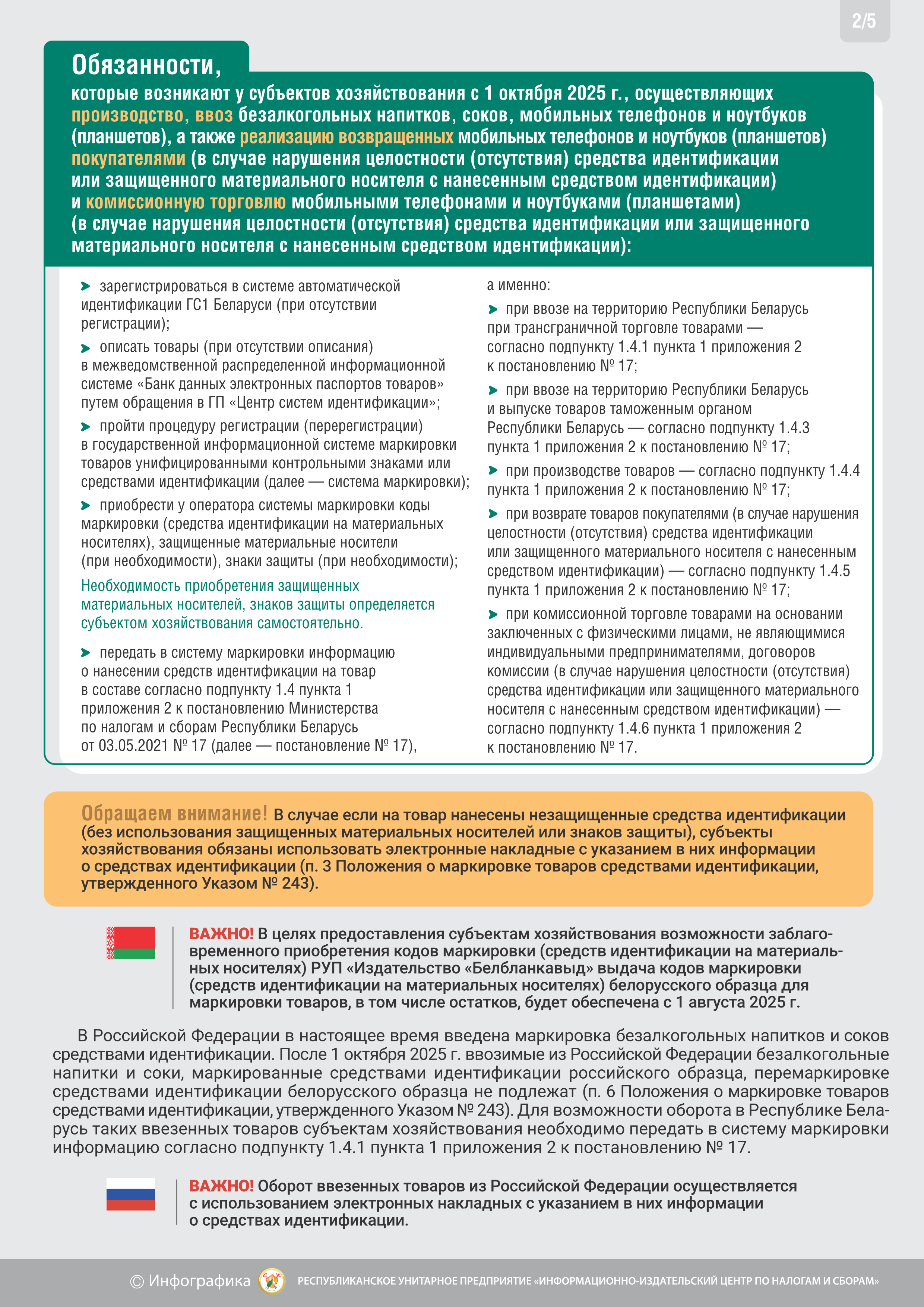 Вниманию субъектов хозяйствования, осуществляющих оборот безалкогольных напитков, соков, мобильных телефонов и ноутбуков