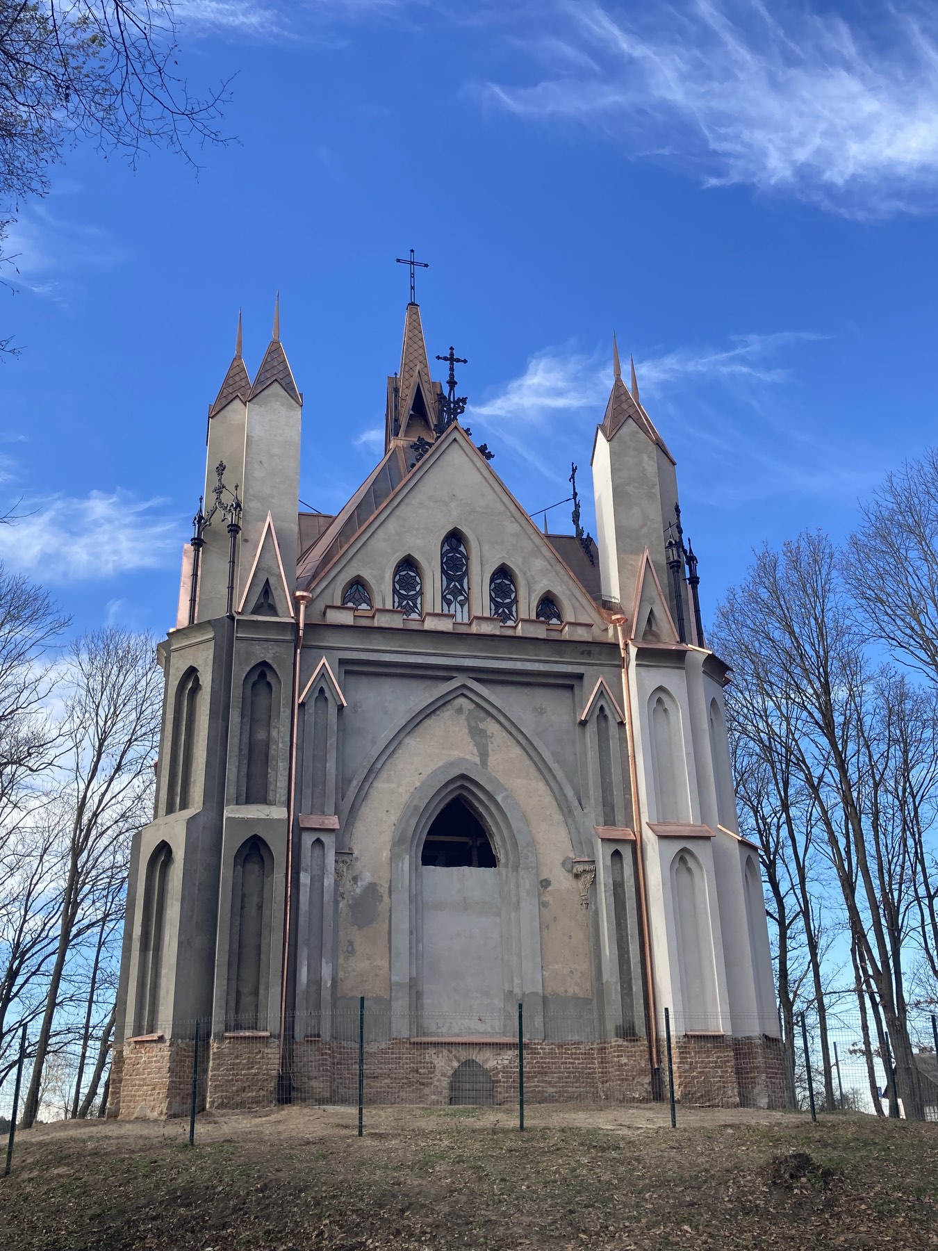 За системой водоемов в юго-западном углу парка в 1839 г. с позволения виленского епископа Клонцевича в формах неоготики была построена каплица.