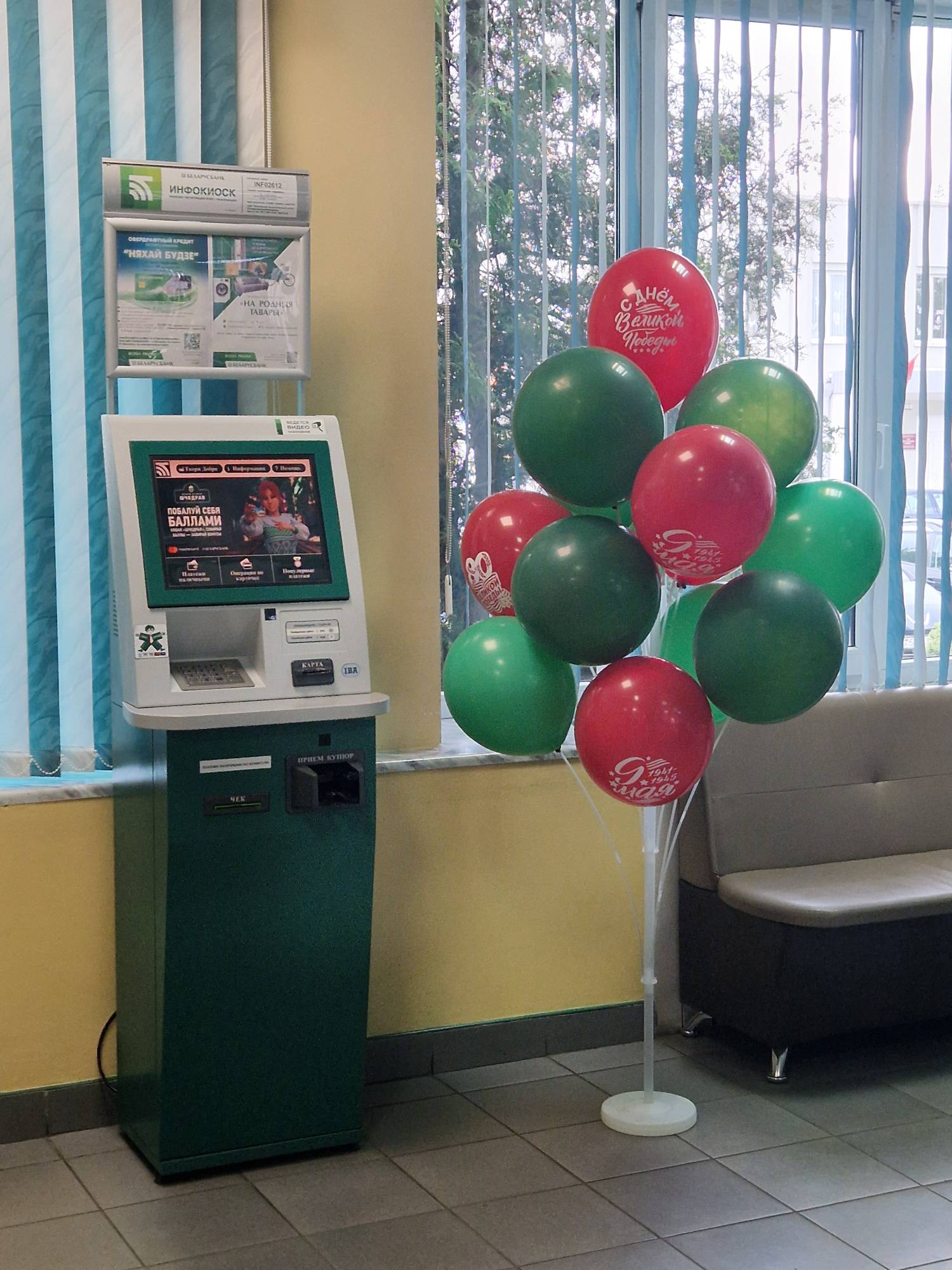 В преддверии праздника 80-летия Великой Победы коллектив ЦБУ №108 ОАО «АСБ Беларусбанк» празднично оформил зоны самообслуживания клиентов.