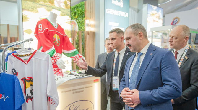 The stand features Belarusian brands and their best products, sports infrastructure and sports facilities, as well as scientific, technical and healthcare solutions in the field of sports. President of the National Olympic Committee Viktor Lukashenko studied in detail advanced technologies in sports featured at the exhibition. The exhibition is a showcase event for the latest achievements of the Russian sports industry, as well as a place to forge business contacts.