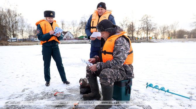 The Emergencies Ministry and the OSVOD rescue organization conducted a joint training event in Brest to practice rescuing people who fell through the ice on 17 February.