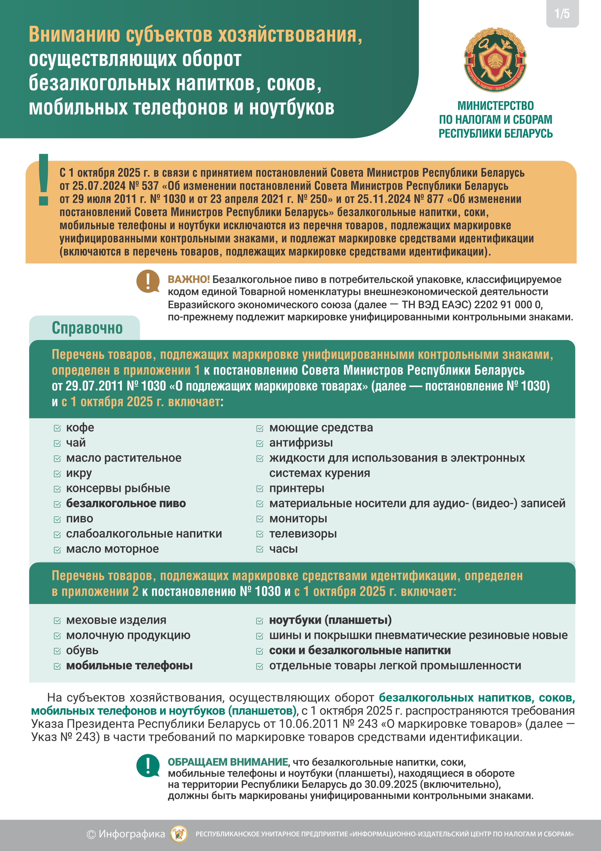 Вниманию субъектов хозяйствования, осуществляющих оборот безалкогольных напитков, соков, мобильных телефонов и ноутбуков