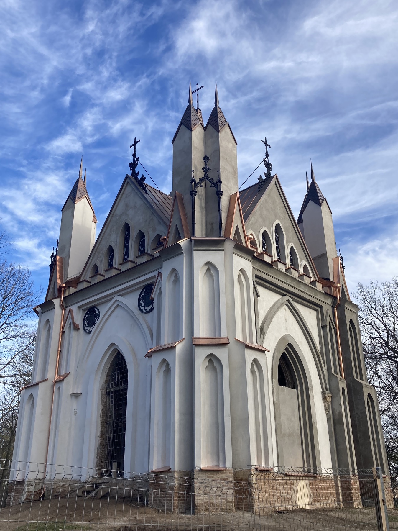 За системой водоемов в юго-западном углу парка в 1839 г. с позволения виленского епископа Клонцевича в формах неоготики была построена каплица.
