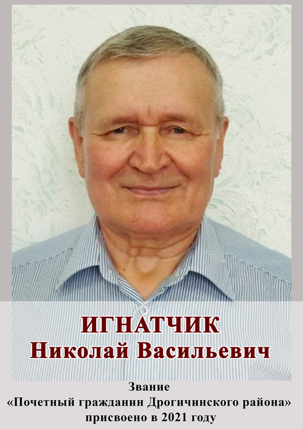 Более сорока лет биография Николая Васильевича Игнатчика связывает его профессиональную деятельность с системой образования, а именно с Хомской средней школой. Здесь он прошёл путь от учителя физики и классного руководителя до директора школы, которой руководил 32 года. В своей деятельности он всегда руководствовался принципами ответственности, конфиденциальности, доброжелательности. Его уравновешенность, умение находить общий язык создавали комфортный психологический климат в коллективе.