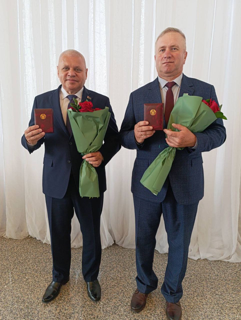 В числе награжденных - председатель Дрогичинского районного исполнительного комитета Сергей Пачко и тракторист СПК "Осовецкий" Александр Шрамук, которые удостоены медалей "За трудовые заслуги"