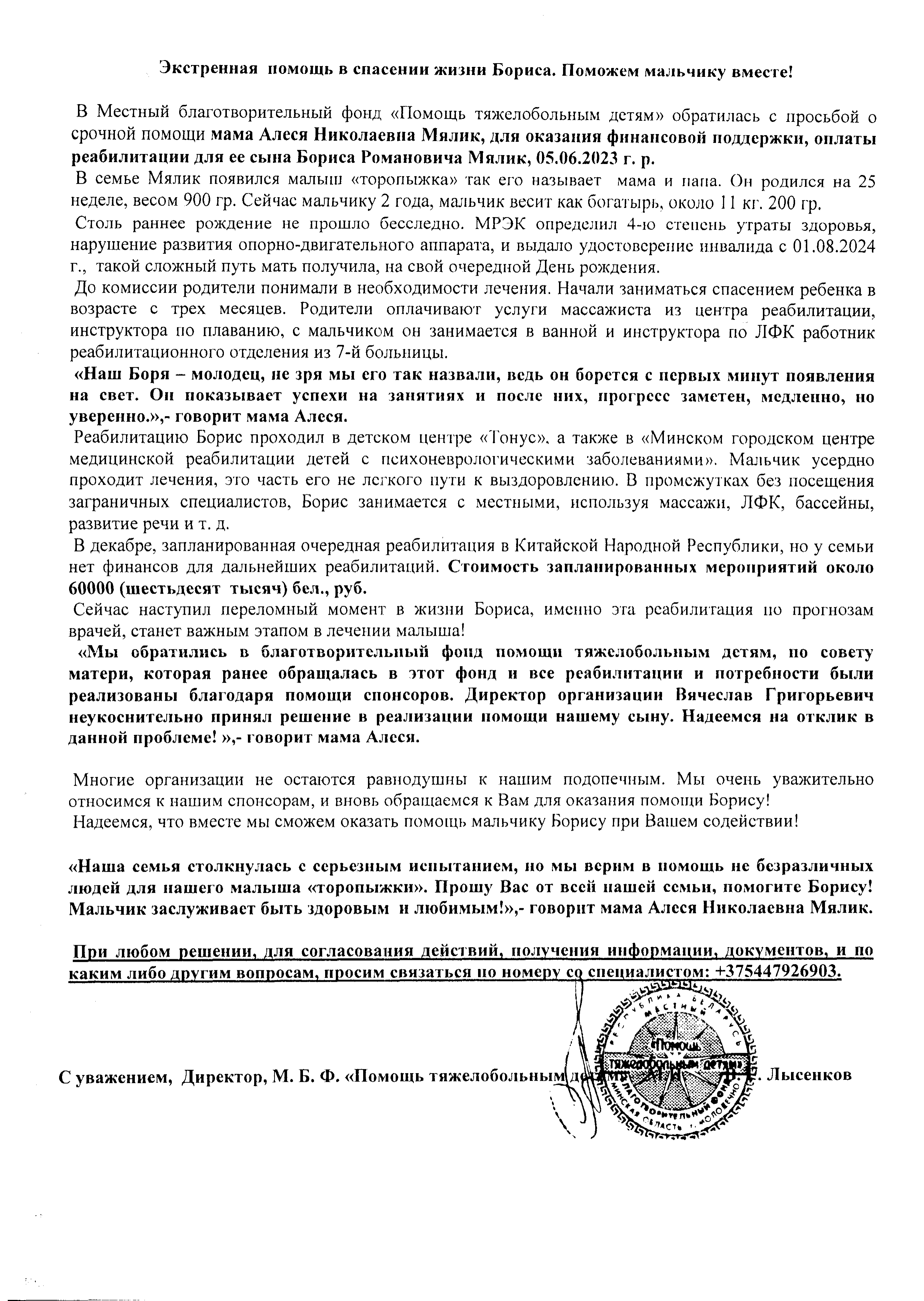 Маленький Борис Мялик очень нуждается в помощи!