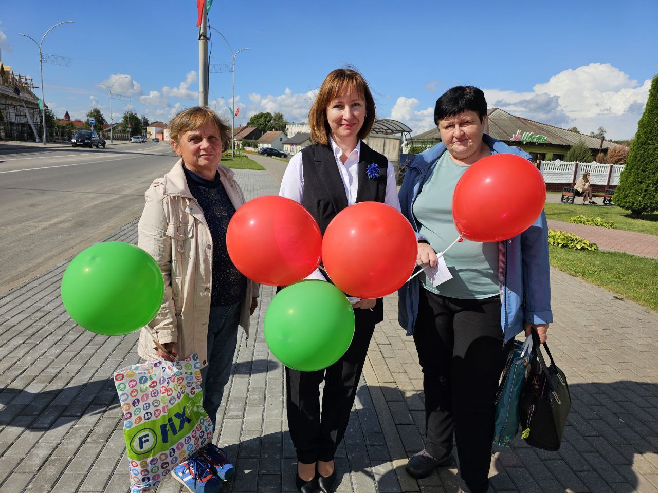Активистки районной организации союза женщин поздравляют жителей и гостей Дрогичина с важным и значимым праздником для каждого белоруса - Днем народного единства.