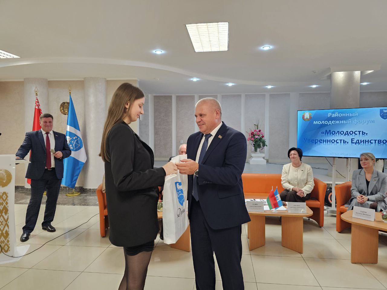 В рамках форума молодые специалисты встретились с представителями районной власти. На форуме присутствовали председатель райисполкома Сергей Пачко, председатель районного Совета депутатов Светлана Гречко, первый заместитель председателя райисполкома Сергей Глинский, заместители председателя Леонид Макаревич и Наталья Лакуц, начальник отдела идеологической работы и по делам молодежи Татьяна Масюк, представители служб и отделов района.