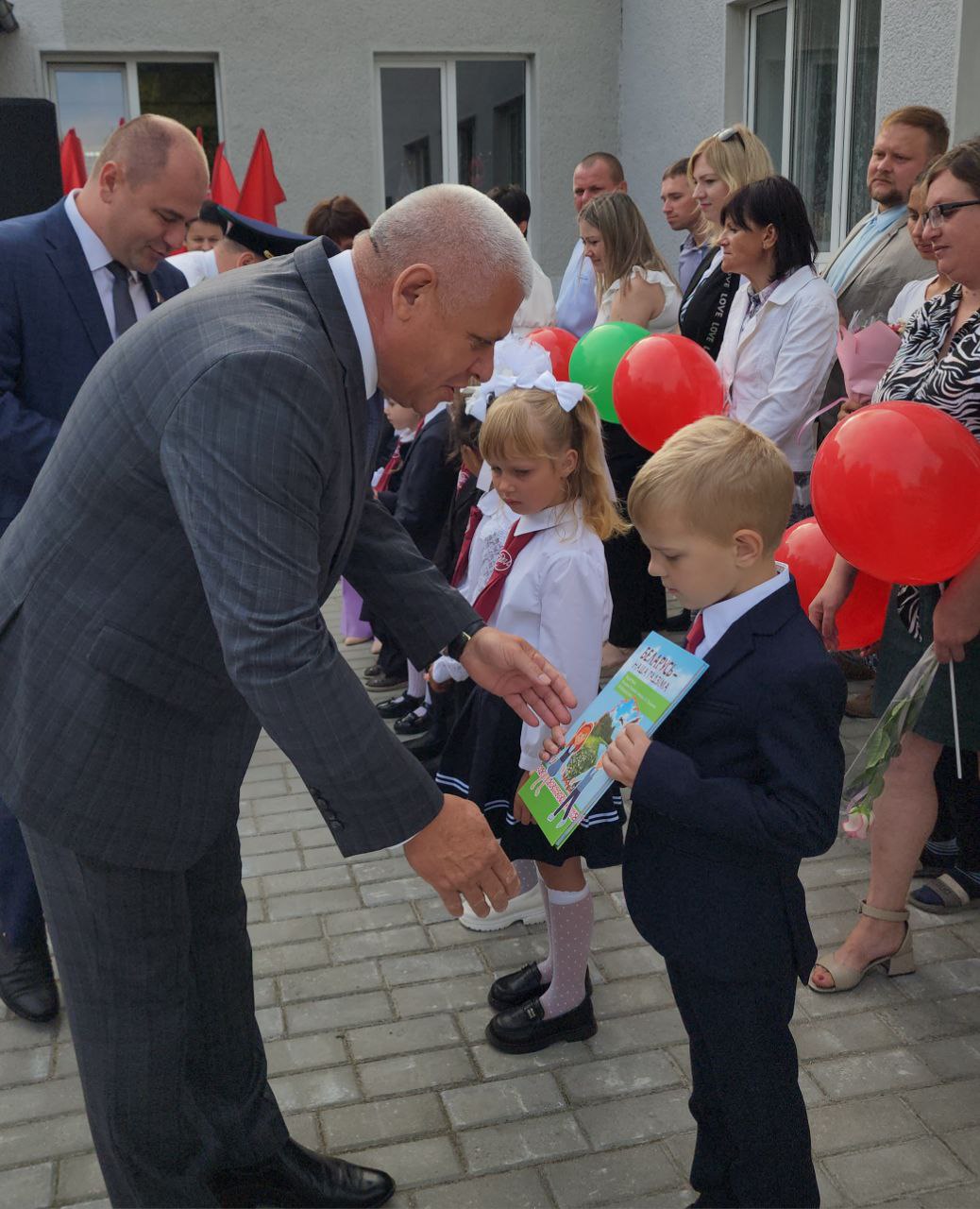 В завершение праздника первоклассники получили в подарок книгу о Родине от Президента Республики Беларусь. Подарки вручали директор школы и почетные гости.