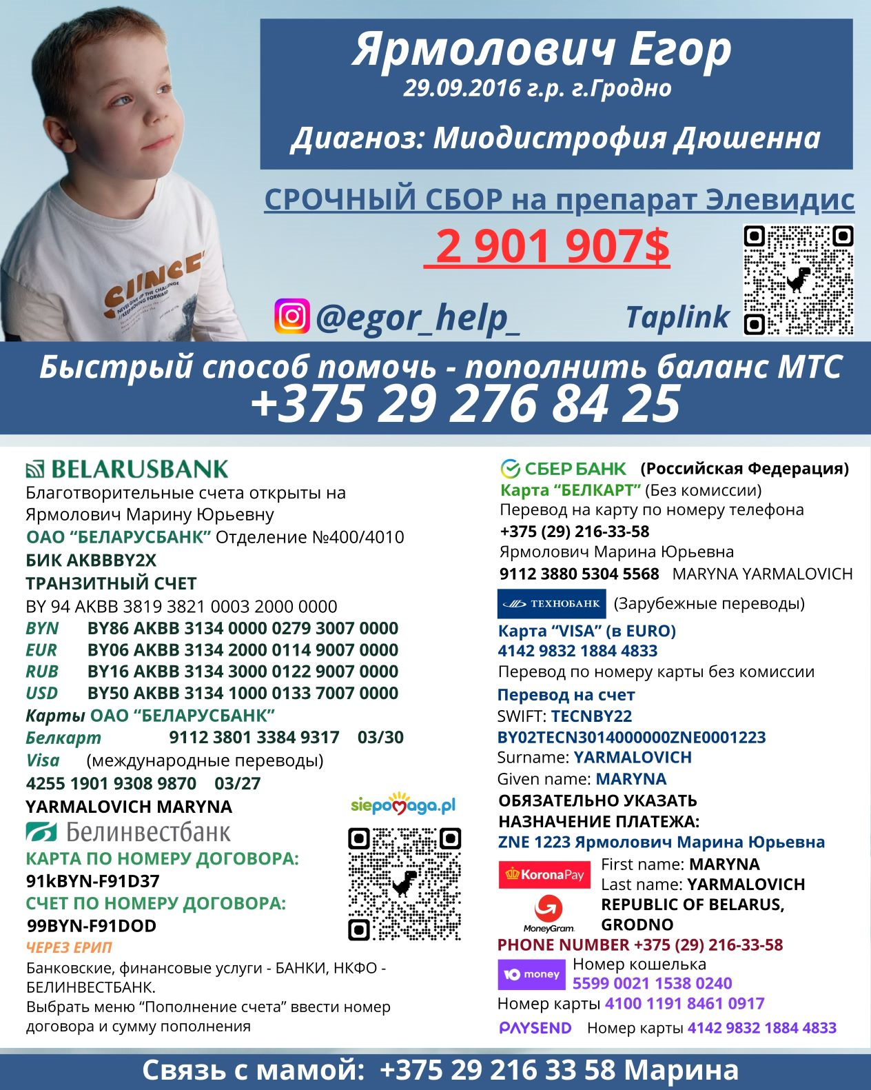 ВНИМАНИЕ! Ярмоловичу Егору требуется помощь.