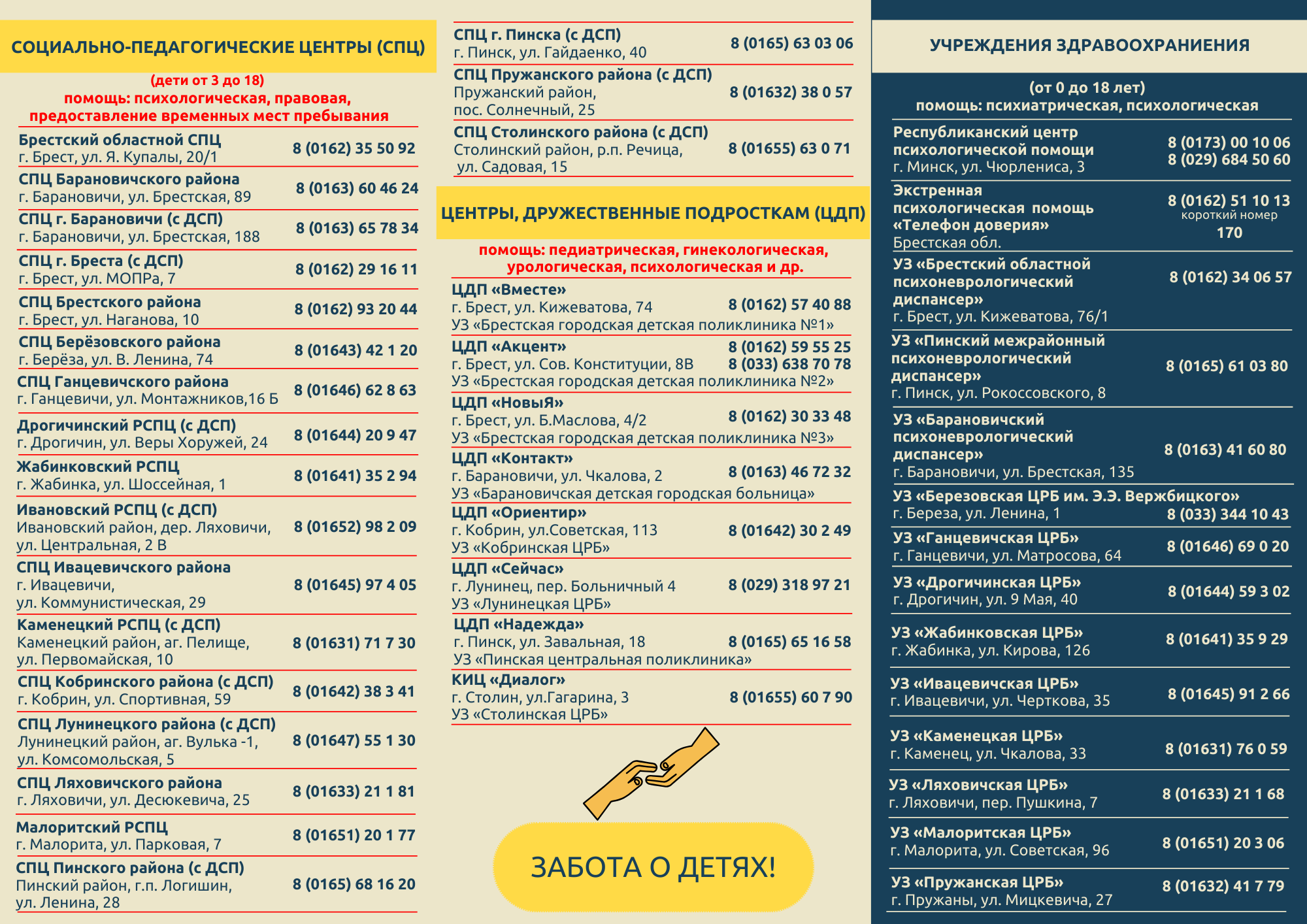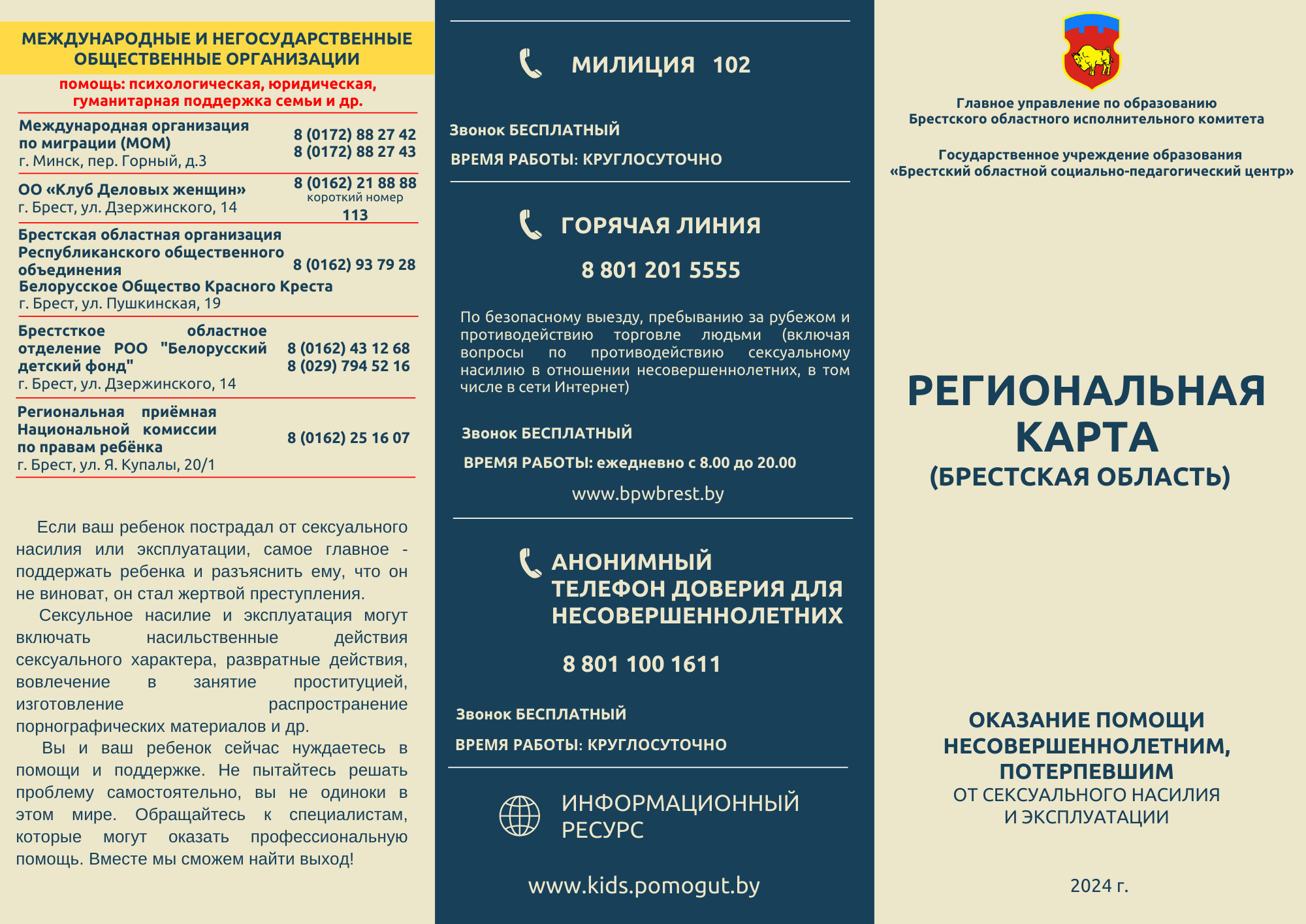 Региональная карта Брестской области по оказанию помощи несовершеннолетним, потерпевшим от сексуального насилия и эксплуатации